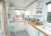 The pastel elements in this tiny kitchen really infuse the space with so much cheerfulness. The size of the space can easily become an issue, so use bright and light colors to make it feel more open.