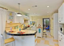 When you are working with a bigger, spacious kitchen and want to capture the retro vibe, color consistency is something to look out for! If you stick to it, it will bind the entire space into a whole, connecting the individual elements together. We’re mesmerized by this coherent pastel yellow kitchen!
