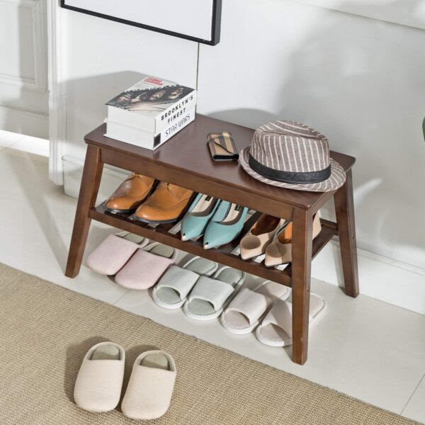 Small Entryway Bench: Anyone with a narrow entryway will appreciate this sleek and slender bench. Its stackable design is great if you are looking to make use of vertical space, plus its retro styling will complement most decor styles.