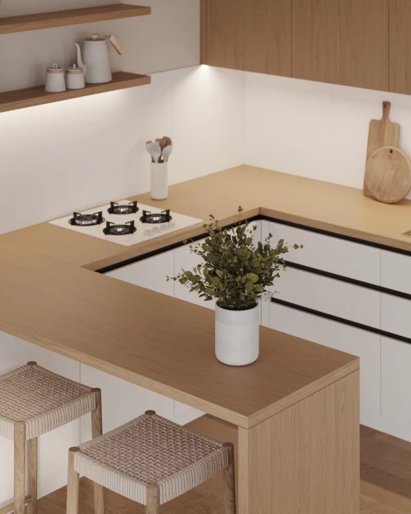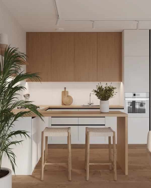 Every element, from the sleek, integrated appliances to the subtle lighting, is designed to enhance functionality without sacrificing style.