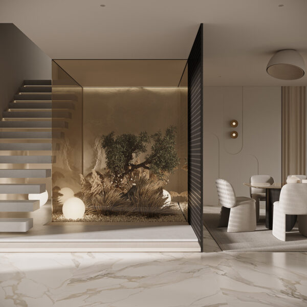 07:29Stepping into this villa by Mohammed Yossef, one is enveloped by an atmosphere of quiet luxury. The design ethos is one of subtlety and sophistication, where less is decidedly more. Neutral tones and natural light collaborate to craft a serene ambiance, while elegant furnishings in gentle curves and soft textiles exude comfort without clamor. Here, the whispers of grandeur are found in the details—the texture of stone, the graceful drape of fabric, the careful curation of space—inviting a sense of peace and privacy in a world that moves too fast.