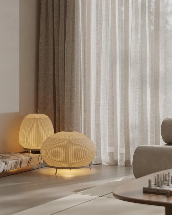 Peaceful Living Space with Warm Floor Lamps and Neutral Hues