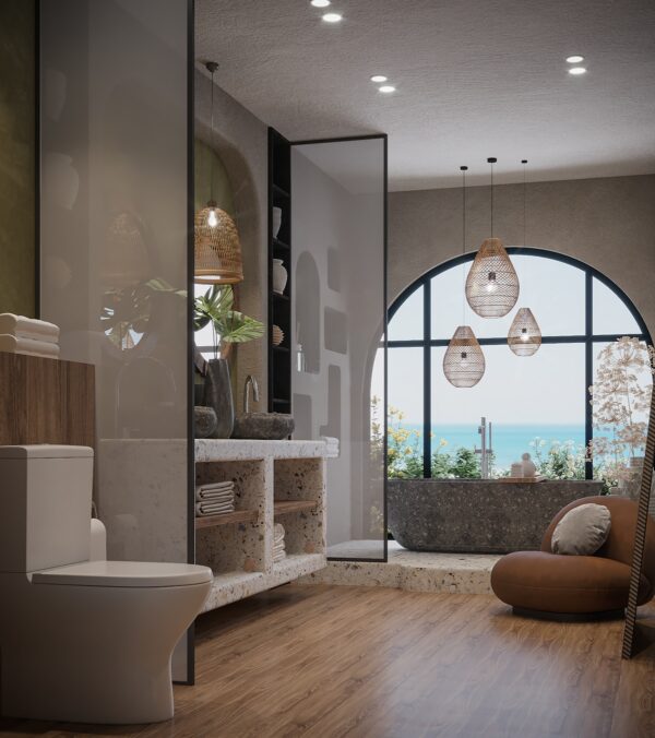 06:29Boho decor is known for its eclectic and free-spirited aesthetic. The boho interior style can transform bathrooms into rich sanctuaries for rejuvenation with a mix of indoor plants, natural materials, and earthy spirit–but how can we adapt it to suit our personality? Minimalists can introduce subtle bohemian touches to a modern bathroom setting to enjoy the vibe without sacrificing simplicity. Rustic boho spaces can include reclaimed elements or vintage furniture for those who value sustainability and craftsmanship. Make your bathroom a canvas for creativity with the help of these 17 boho bathroom ideas filled with inspiration for vanity units, unique sinks, bathroom shelving, shower spaces, lighting, and more.
