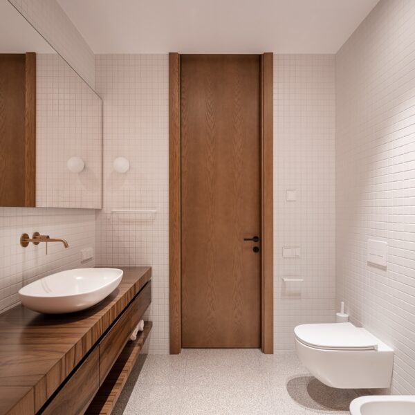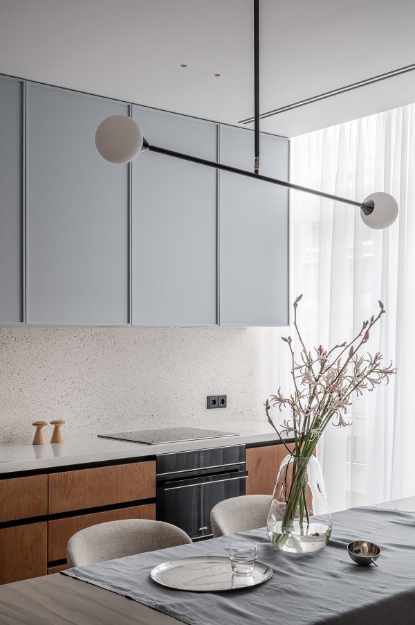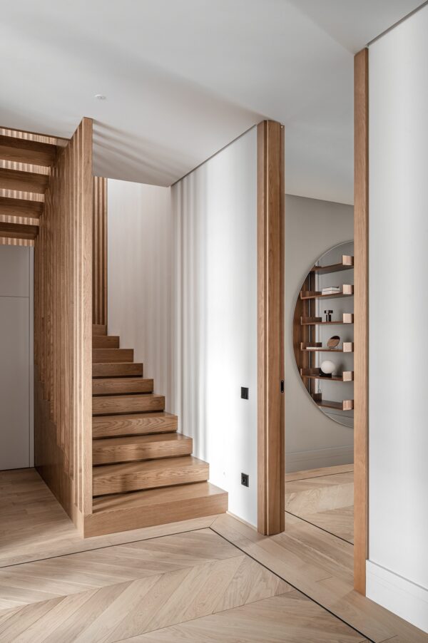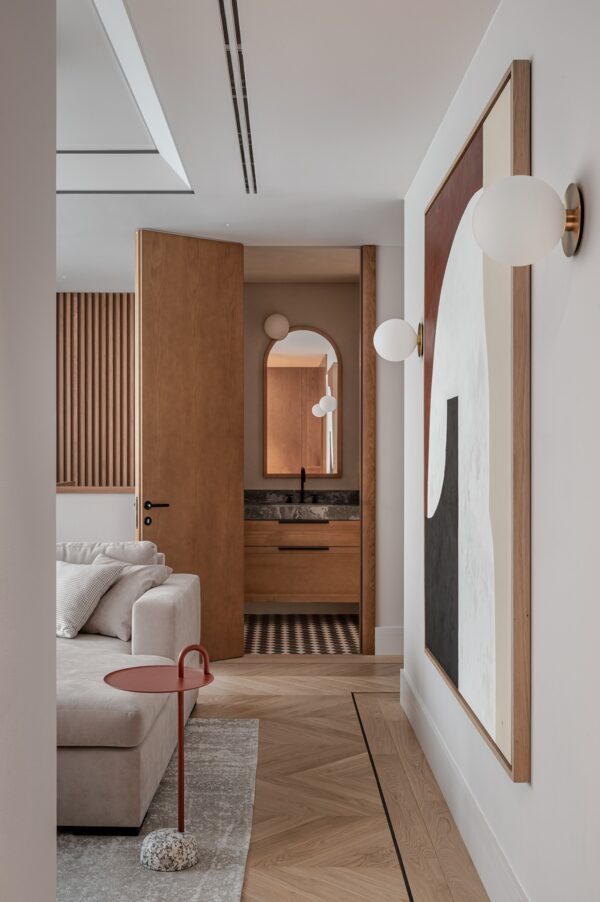 06:29Colorful decor accents, rich wooden design elements, and eye-catching modern art create exciting moments of interest around this 200 sqm family apartment in Kyiv, Ukraine. Created by architects Yevheniia Dubrovska and Valeria Rezukova, this engaging home has two floors that accommodate the homeowners and their two teenagers. The upper floor contains the family living room, a kitchen diner, and an impressive walk-in closet. The bedrooms are situated downstairs away from the hustle and bustle of daily life. As we tour the apartment, we’ll discover an array of inspirational vignettes, from the bar area in the living room with a wood-slatted feature wall to a memorable modern bathroom with a soft pink aesthetic.