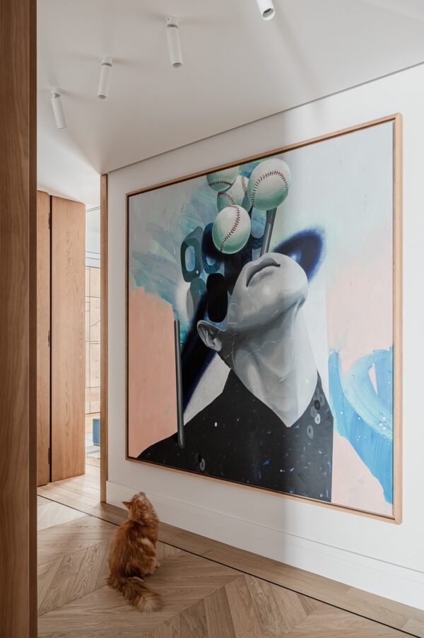 Modern Family Apartment in Kyiv, Ukraine: A Fusion of Colorful Decor, Rich Wood Accents, and Contemporary Art